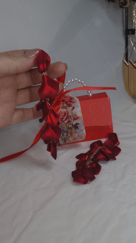 Red Statement Dangle Earrings – Long Petal Earrings, Bold Evening Jewelry, Elegant Gift for Her