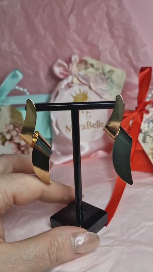 Gold Curved Statement Earrings Modern Sculptural Drop Earrings Minimalist Gold Dangle Earrings Lightweight Elegant Jewelry Gift for Her