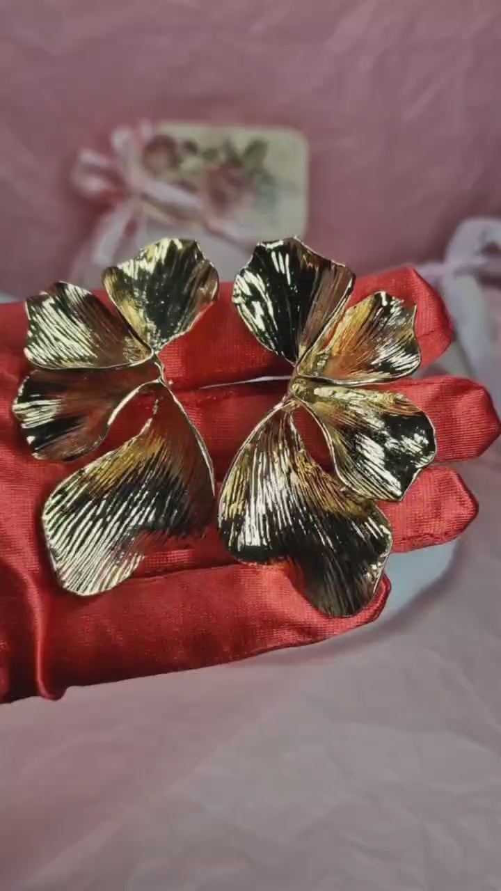 Inspired by natural botanical shapes, these sculptural earrings feature beautifully textured petals that catch the light with every movement. Their bold yet elegant design makes them perfect for special occasions, evening outfits or fashion-forward everyday styling.