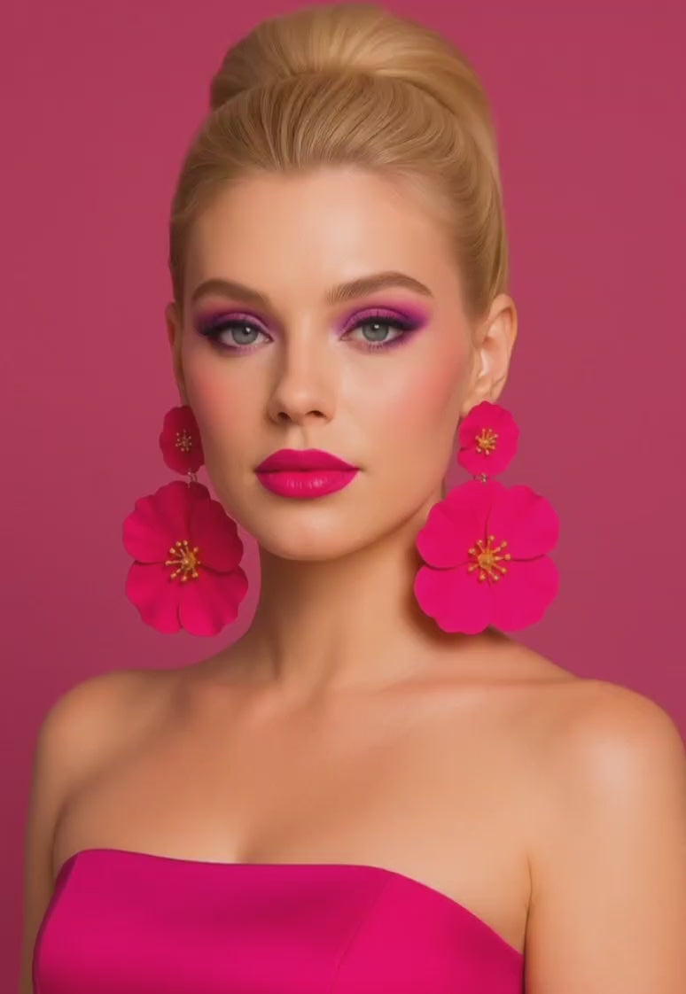 ✨ Turn heads instantly with these vibrant hot pink flower statement earrings.
